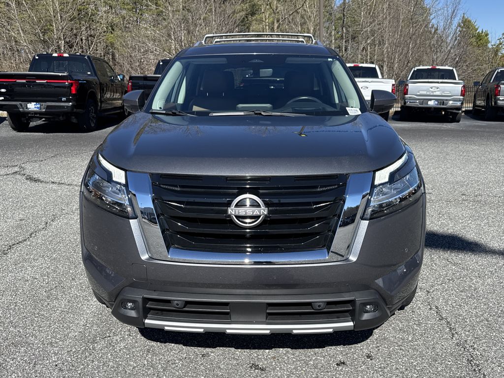 **Local Trade In**, **One Owner**, **Clean Carfax**, **Low Mileage**, **Power Sunroof/Moonroof**, **Leather interior**, **Heated/Cooled Seats**, **Front bucket seats with center console**, Apple car play/ Android auto, **Bluetooth/Hands Free**, **Rear back up camera**, **Reverse Sensing System**, **Blind Spot Detection**, **Lane monitor**, **GPS/ Navigation**, **Drivers Power Seat**, **Passenger power seat**, **Power liftgate**, **Remote start**, **Fixed running boards/side steps**, and **SIRIUS SAT. RADIO** Cargo Package (Cargo Area Protector, Cargo Net, and First Aid Kit), 13 Speakers, 3rd row seats: bench, 4-Wheel Disc Brakes, ABS brakes, Air Conditioning, Alloy wheels, AM/FM radio: SiriusXM, Auto High-beam Headlights, Auto tilt-away steering wheel, Auto-dimming Rear-View mirror, Automatic temperature control, Axle Ratio: 4.334, Bench Seat Carpeted Floor Mats (Set of 4), Bodyside moldings, Bose Premium Audio System, Brake assist, Bumpers: body-color, Cross Bars, Delay-off headlights, Driver door bin, Driver vanity mirror, Dual front impact airbags, Dual front side impact airbags, Electronic Stability Control, Emergency communication system: NissanConnect Services, Exterior Parking Camera Rear, Four wheel independent suspension, Front anti-roll bar, Front Bucket Seats, Front Center Armrest, Front dual zone A/C, Front reading lights, Fully automatic headlights, Garage door transmitter: HomeLink, Heads-Up Display, Heated & Cooled Front Bucket Seats, Heated door mirrors, Heated front seats, Heated rear seats, Heated steering wheel, Illuminated entry, Knee airbag, Leather steering wheel, LED Fog Lamps, Low tire pressure warning, Memory seat, Navigation system: NissanConnect Navigation, NissanConnect w/Navigation & Services, Occupant sensing airbag, Outside temperature display, Overhead airbag, Overhead console, Panic alarm, Passenger door bin, Passenger vanity mirror, Power door mirrors, Power driver seat, Power Liftgate, Power moonroof, Power passenger seat, Power steering, Power windows, Radio data system, Radio: AM/FM Audio System, Rain sensing wipers, Rear air conditioning, Rear anti-roll bar, Rear reading lights, Rear seat center armrest, Rear side impact airbag, Rear window defroster, Rear window wiper, Remote keyless entry, Security system, Semi-Aniline Leather Seating Surfaces, Speed control, Speed-sensing steering, Speed-Sensitive Wipers, Split folding rear seat, Spoiler, Steering wheel memory, Steering wheel mounted audio controls, Tachometer, Telescoping steering wheel, Tilt steering wheel, Traction control, Trip computer, Turn signal indicator mirrors, Variably intermittent wipers, Ventilated front seats, and Wheels: 20" Machined Alloy w/Dark Met Gray Finish Shottenkirk Ford of Jasper is pleased to offer you this exceptional 2023 Nissan Pathfinder. This Platinum Pathfinder Exterior is finished in Gun Metallic and the interior is finished in Chestnut w/Semi-Aniline Leather Seating Surfaces. CARFAX One-Owner. Clean CARFAX. Priced below KBB Fair Purchase Price!