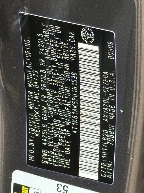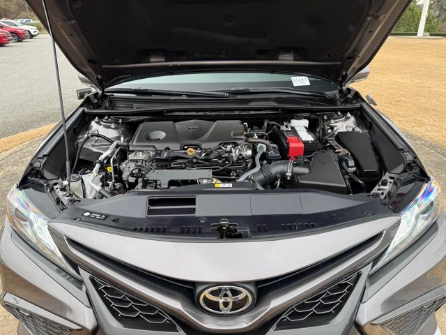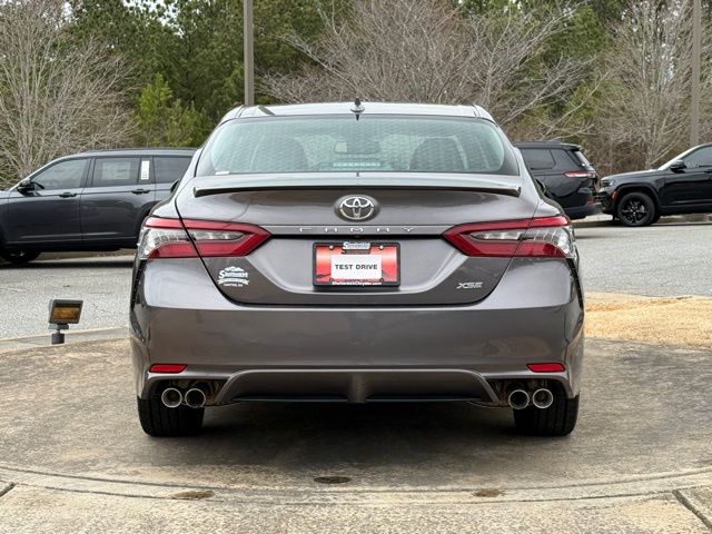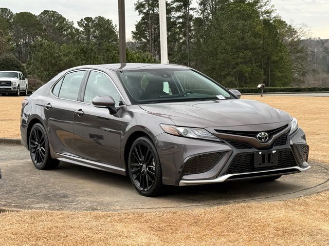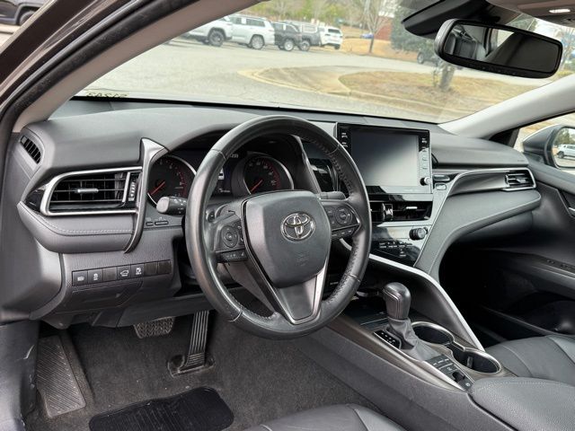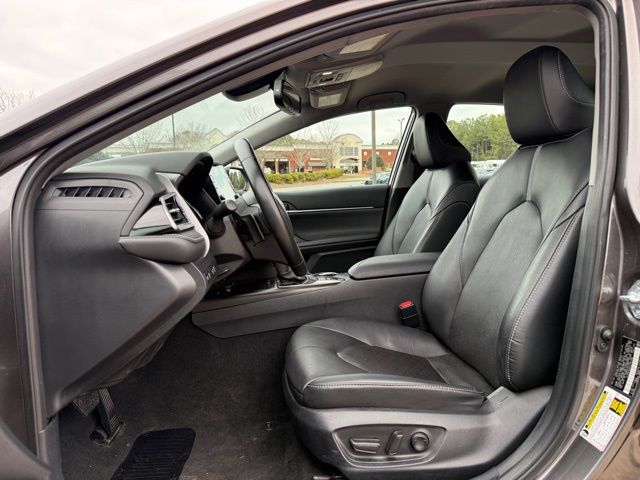 This vehicle comes well equipped with Camry XSE, 4D Sedan, 2.5L I4 DOHC 16V, 8-Speed Automatic, FWD, Gray, and Black Leather Camry XSE, 4D Sedan, 2.5L I4 DOHC 16V, 8-Speed Automatic, FWD, Gray, Black Leather, 4-Wheel Disc Brakes, 6 Speakers, ABS brakes, Air Conditioning, Alloy wheels, AM/FM radio: SiriusXM, Apple CarPlay/Android Auto, Auto High-beam Headlights, Auto-dimming Rear-View mirror, Automatic temperature control, Brake assist, Bumpers: body-color, Delay-off headlights, Driver door bin, Driver vanity mirror, Dual front impact airbags, Dual front side impact airbags, Electronic Stability Control, Emergency communication system: Safety Connect (1-year trial), Exterior Parking Camera Rear, Four wheel independent suspension, Front anti-roll bar, Front Bucket Seats, Front Center Armrest, Front dual zone A/C, Front reading lights, Fully automatic headlights, Garage door transmitter: HomeLink, Heated door mirrors, Heated front seats, Illuminated entry, Knee airbag, Leather steering wheel, Low tire pressure warning, Multi-Stage Heated Front Bucket Seats, Occupant sensing airbag, Outside temperature display, Overhead airbag, Overhead console, Panic alarm, Passenger door bin, Passenger vanity mirror, Perforated Leather Seat Trim, Power door mirrors, Power driver seat, Power passenger seat, Power steering, Power windows, Radio data system, Radio: Audio Plus, Rear anti-roll bar, Rear reading lights, Rear seat center armrest, Rear side impact airbag, Rear window defroster, Remote keyless entry, Security system, Speed control, Speed-sensing steering, Split folding rear seat, Spoiler, Steering wheel mounted audio controls, Tachometer, Telescoping steering wheel, Tilt steering wheel, Traction control, Trip computer, Turn signal indicator mirrors, Variably intermittent wipers, and Wheels: 8.0J x 19" Alloy.