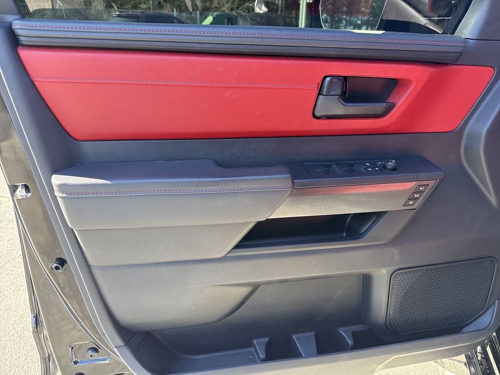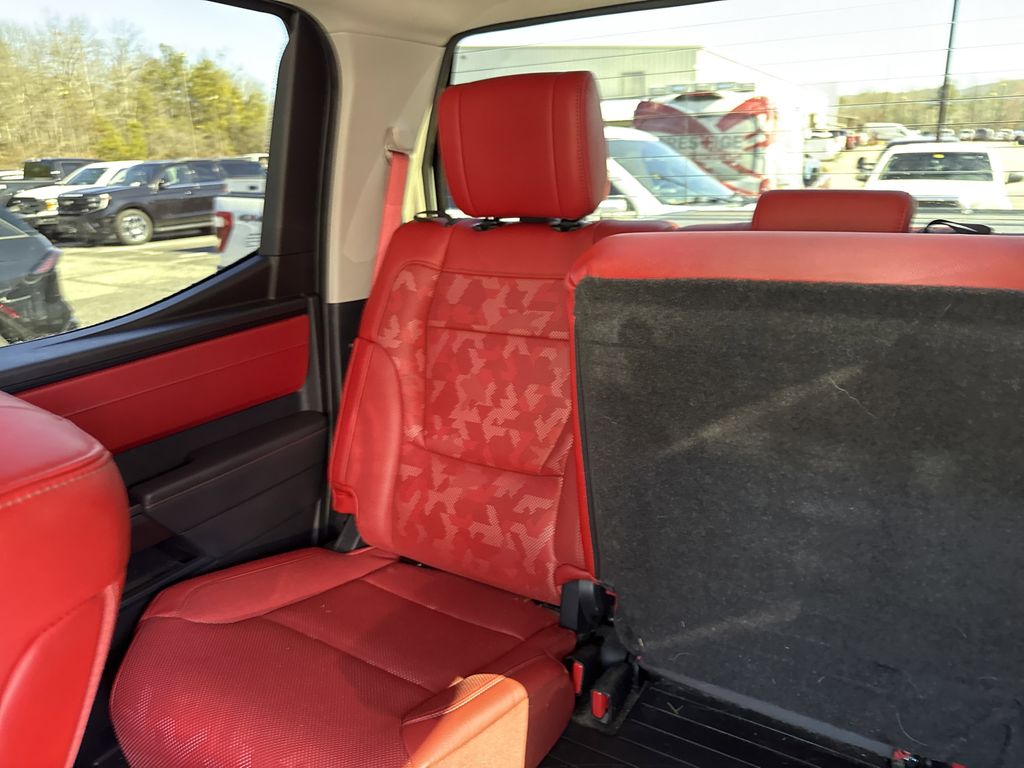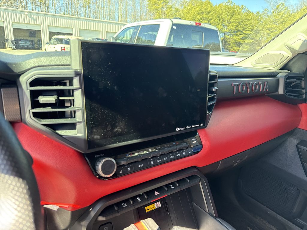 **Local Trade In**, **Clean Carfax**, **Power Sunroof/Moonroof**, **Leather interior**, **Heated/Cooled Seats**, **Front bucket seats with center console**, Apple car play/ Android auto, **Ford Sync Bluetooth**, **Bluetooth/Hands Free**, **Rear back up camera**, **Reverse Sensing System**, **Blind Spot Detection**, **Lane monitor**, **GPS/ Navigation**, **Drivers Power Seat**, **Passenger power seat**, **Power liftgate**, **Remote start**, **Fixed running boards/side steps**, **SIRIUS SAT. RADIO**, and Forward collison/adaptive cruise control Towing Technology Package, TRD Pro Package (400W/120V AC Rear Seat & Bed Power Supply, Black Dual Exhaust Tips w/Debossed TRD Pro Logo, Front & Rear Mud Guards, Heated Color-Keyed Outside Mirrors, LED Lightbar w/Fog & Marker Lights, Multi-Terrain Back Monitor, Panoramic View Back Monitor, Power Panoramic Roof, Qi-Compatible Wireless Smartphone Charger, Smoked-Finish Premium LED Headlights & DRL, and TRD Pro Heated Leather-Trimmed Steering Wheel), TRD Pro Tow Package (Heated Power Sideview Mirrors w/LED Turn Signals), 12 Speakers, 3.31 Axle Ratio, 4-Wheel Disc Brakes, ABS brakes, Air Conditioning, Alloy wheels, AM/FM radio: SiriusXM, Apple CarPlay/Android Auto, Auto High-beam Headlights, Auto-dimming door mirrors, Auto-dimming Rear-View mirror, Automatic temperature control, Brake assist, Bumpers: body-color, Delay-off headlights, Driver door bin, Driver vanity mirror, Dual front impact airbags, Dual front side impact airbags, Electronic Stability Control, Emergency communication system: Safety Connect (10-year trial), Front anti-roll bar, Front Bucket Seats, Front Center Armrest, Front dual zone A/C, Front fog lights, Front reading lights, Front wheel independent suspension, Fully automatic headlights, Garage door transmitter: HomeLink, Heated & Ventilated Front Bucket Seats, Heated door mirrors, Heated front seats, Heated steering wheel, Illuminated entry, Knee airbag, Leather Shift Knob, Low tire pressure warning, Memory seat, Navigation System, Occupant sensing airbag, Outside temperature display, Overhead airbag, Overhead console, Panic alarm, Passenger door bin, Passenger vanity mirror, Power door mirrors, Power driver seat, Power moonroof, Power passenger seat, Power steering, Power windows, Radio data system, Radio: Premium Audio w/JBL, Rear reading lights, Rear seat center armrest, Rear step bumper, Rear window defroster, Remote keyless entry, Security system, SofTex Seat Trim, Speed control, Speed-sensing steering, Split folding rear seat, Sport steering wheel, Steering wheel mounted audio controls, Tachometer, Telescoping steering wheel, Tilt steering wheel, Traction control, Trip computer, Turn signal indicator mirrors, Variably intermittent wipers, Ventilated front seats, Voltmeter, and Wheels: 18" x 8" Black BBS Forged Aluminum Shottenkirk Ford of Jasper is pleased to offer you this exceptional 2023 Toyota Tundra Hybrid. This TRD Pro Tundra Hybrid Exterior is finished in Midnight Black Metallic and the interior is finished in Cockpit Red w/SofTex Seat Trim.