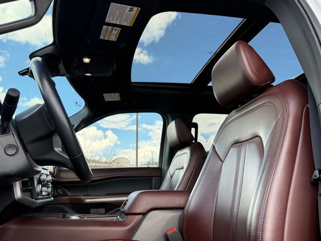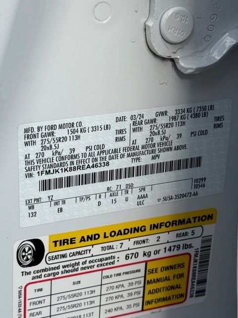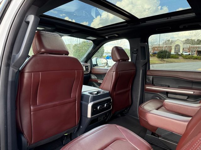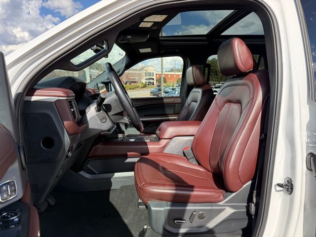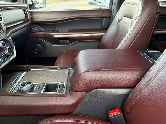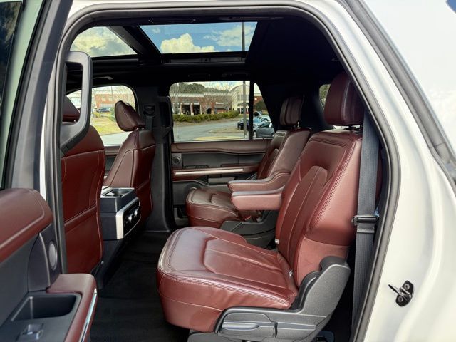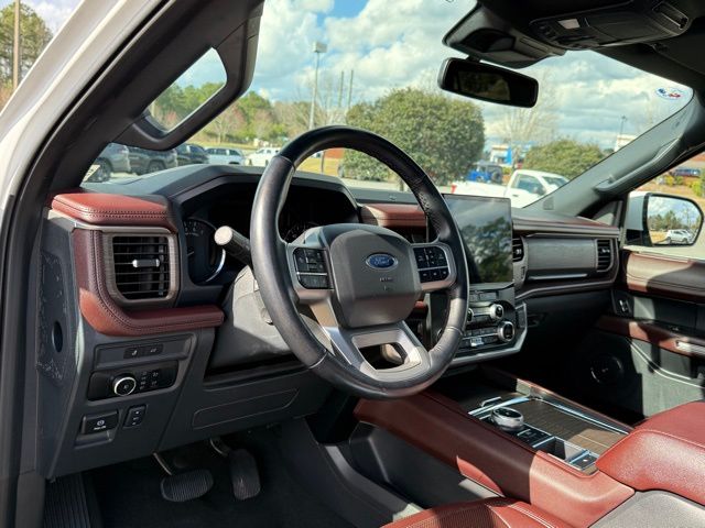 This vehicle comes well equipped with Expedition Max Limited, 4D Sport Utility, EcoBoost 3.5L V6 GTDi DOHC 24V Twin Turbocharged, 10-Speed Automatic, RWD, Oxford White, and Mahogany Leather Equipment Group 301A Mid Package, Expedition Max Limited, 4D Sport Utility, EcoBoost 3.5L V6 GTDi DOHC 24V Twin Turbocharged, 10-Speed Automatic, RWD, Oxford White, Mahogany Leather, 12 Speakers, 3.31 Axle Ratio, 3rd row seats: split-bench, 4-Wheel Disc Brakes, ABS brakes, Adjustable pedals, Air Conditioning, Alloy wheels, AM/FM radio: SiriusXM with 360L, Auto High-beam Headlights, Auto-dimming door mirrors, Auto-dimming Rear-View mirror, Automatic temperature control, Brake assist, Bumpers: body-color, Compass, Delay-off headlights, Driver door bin, Driver vanity mirror, Dual front impact airbags, Dual front side impact airbags, Electronic Stability Control, Emergency communication system: SYNC 4 911 Assist, Exterior Parking Camera Rear, Four wheel independent suspension, Front anti-roll bar, Front Bucket Seats, Front Center Armrest, Front dual zone A/C, Front fog lights, Front License Plate Bracket, Front reading lights, Fully automatic headlights, Garage door transmitter, Heated & Ventilated Leather Front Captain's Chairs, Heated door mirrors, Heated front seats, Heated rear seats, Heated steering wheel, Illuminated entry, Leather steering wheel, Low tire pressure warning, Memory seat, Navigation system: Connected Navigation, Occupant sensing airbag, Outside temperature display, Overhead airbag, Overhead console, Panic alarm, Passenger door bin, Passenger vanity mirror, Pedal memory, Power door mirrors, Power driver seat, Power Liftgate, Power moonroof, Power passenger seat, Power steering, Power windows, Radio data system, Radio: B&O Sound System by Bang & Olufsen, Rain sensing wipers, Rear air conditioning, Rear anti-roll bar, Rear reading lights, Rear window defroster, Rear window wiper, Reclining 3rd row seat, Remote keyless entry, Security system, SiriusXM w/360L, Speed control, Speed-sensing steering, Speed-Sensitive Wipers, Split folding rear seat, Spoiler, Steering wheel memory, Steering wheel mounted audio controls, SYNC 4 w/Enhanced Voice Recognition, Tachometer, Telescoping steering wheel, Tilt steering wheel, Traction control, Trip computer, Turn signal indicator mirrors, Variably intermittent wipers, Ventilated front seats, Voltmeter, and Wheels: 20" Bright Machined Aluminum.