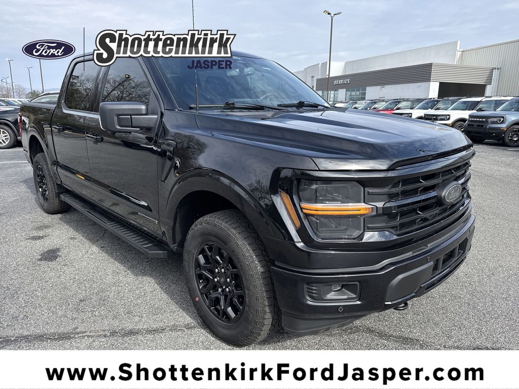 **One Owner**, **Clean Carfax**, **Low Mileage**, **Heated Seats, **Front bucket seats with center console**, Apple car play/ Android auto, **Ford Sync Bluetooth**, **Bluetooth/Hands Free**, **Rear back up camera**, **Reverse Sensing System**, **Blind Spot Detection**, **Lane monitor**, **GPS/ Navigation**, **Drivers Power Seat**, **Passenger power seat**, **Power windows and locks**, **Remote start**, **Fixed running boards/side steps**, **SIRIUS SAT. RADIO**, **Spray in bedliner**, Forward collison/adaptive cruise control, and EQUIPMENT GROUP 302A 4,770.00 XLT SERIES LED SIDE-MIRROR SPOTLIGHTS POWER-SLIDING REAR WINDOW OPTIONAL EQUIPMENT/OTHER 3.5L POWERBOOST FULL HYBRID 3,560.00 HYBRID ELEC 10-SPD AUTO TRANS NO CHARGE 3.73 ELECTRONIC LOCK RR AXLE NO CHARGE 7400# GVWR PACKAGE XLT BLACK APPEARANCE PACKAGE 495.00 .275/65R 18 BSW ALL-TERRAIN .18" GLOSS BLACK WHEELS 50 STATE EMISSIONS NO CHARGE FLOOR LINER - TRAY STYLE 200.00 MOBILE OFFICE PACKAGE 555.00 .PARTITIONED LOCKABLE STORAGE .WIRELESS CHARGING PAD BLUECRUISE EQUIP: 90DAY TRIAL MIRROR MAN FOLD W/POWER GLASS STANDARD FUEL TANK BEDLINER-TOUGHBED SPRAYIN*ACCY 595.00 Equipment Group 302A Mid (400W Cab & Bed Outlets, Adaptive Cruise Control w/Stop & Go, Auto-Dimming Rear-View Mirror, Cloth 40/Console/40 Front Seats, Ford BlueCruise Equipped (90-Day Trial), Heated Front Seats, Intelligent Access w/Push Button Start, Power Glass Heated Sideview Mirrors, Power-Sliding Rear Window, Remote Start System w/Remote Tailgate Release, and Speed Sign Recognition), GVWR: 7,400 lbs Payload Package, Mobile Office Package (Console Worksurface and Partitioned Lockable Rear Storage), XLT Black Appearance Package (6" Black Running Boards, Black Exterior Badging, Black Grille, Body-Color Front & Rear Bumpers, Dark Interior Appliques, Floor Shifter, Gray Box Side Decal, Unique Sport Cloth 40/Console/40 Front-Seats, and Wheels: 18" Gloss Black), 6 Speakers, AM/FM radio: SiriusXM with 360L, Electronic Locking w/3.73 Axle Ratio, Navigation system: Connected Navigation, Radio data system, Radio: AM/FM SiriusXM w/360L, SYNC 4 w/Enhanced Voice Recognition, and Variably intermittent wipers Shottenkirk Ford of Jasper is pleased to offer you this exceptional 2024 Ford F-150. This XLT F-150 Exterior is finished in Agate Black Metallic and the interior is finished in Black w/Unique Sport Cloth 40/Console/40 Power Front Seat. CARFAX One-Owner. Clean CARFAX.