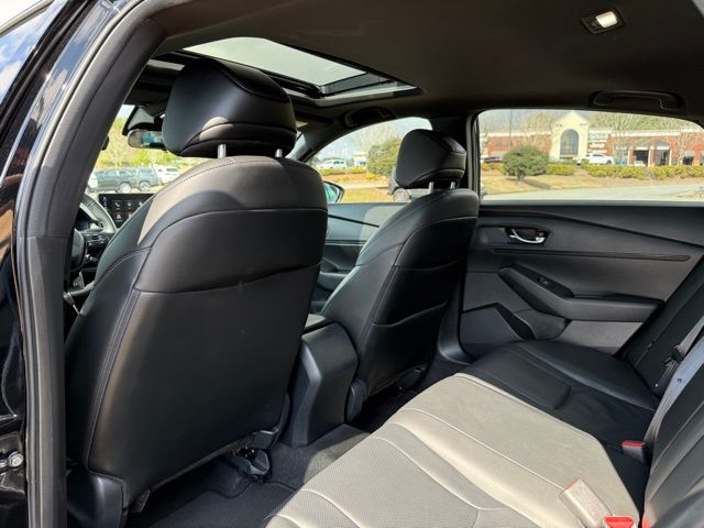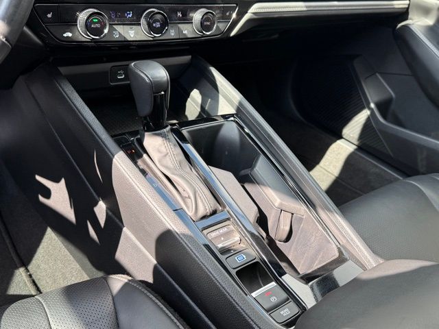 This vehicle comes well equipped with Accord Hybrid Sport-L, 4D Sedan, 2.0L 16V DOHC, eCVT, FWD, Black, and Black Leather Accord Hybrid Sport-L, 4D Sedan, 2.0L 16V DOHC, eCVT, FWD, Black, Black Leather, 4-Wheel Disc Brakes, 8 Speakers, ABS brakes, Adaptive Cruise Control: Adaptive Cruise Control (ACC) with Low-Speed Follow, Air Conditioning, Alloy wheels, AM/FM radio, Apple CarPlay/Android Auto, Auto High-beam Headlights, Automatic temperature control, Blind Spot Information (BSI) System warning, Brake assist, Bumpers: body-color, Compass, Delay-off headlights, Driver door bin, Driver vanity mirror, Dual front impact airbags, Dual front side impact airbags, Electronic Stability Control, Emergency communication system: HondaLink, Exterior Parking Camera Rear, Four wheel independent suspension, Front anti-roll bar, Front Bucket Seats, Front Center Armrest, Front dual zone A/C, Front reading lights, Fully automatic headlights, Heated Front Bucket Seats, Heated front seats, Illuminated entry, Knee airbag, Lane departure: Lane Keeping Assist System (LKAS) active, Leather Shift Knob, Leather steering wheel, Leather-Trimmed Seat Trim, Low tire pressure warning, Memory seat, Occupant sensing airbag, Outside temperature display, Overhead airbag, Overhead console, Panic alarm, Passenger door bin, Passenger vanity mirror, Power door mirrors, Power driver seat, Power moonroof, Power passenger seat, Power steering, Power windows, Radio data system, Radio: 180-Watt Audio System, Rear anti-roll bar, Rear reading lights, Rear seat center armrest, Rear side impact airbag, Rear window defroster, Remote keyless entry, Security system, Speed control, Speed-sensing steering, Speed-Sensitive Wipers, Split folding rear seat, Spoiler, Steering wheel mounted audio controls, Telescoping steering wheel, Tilt steering wheel, Traction control, Trip computer, Variably intermittent wipers, and Wheels: 19" x 8.5J Matte Berlina Black.