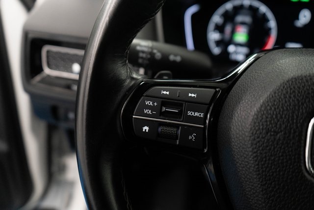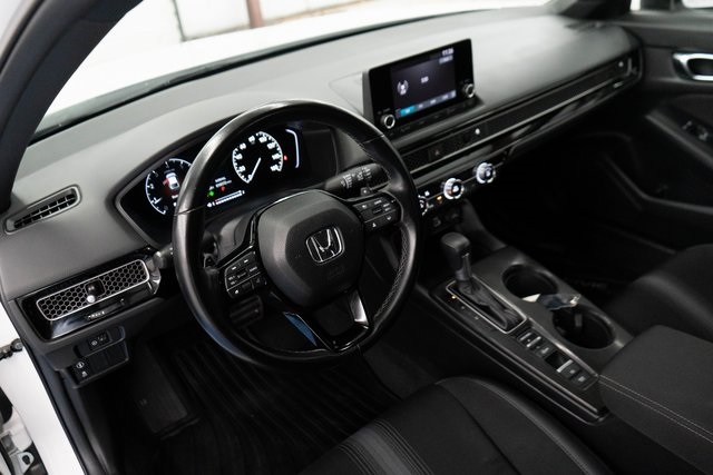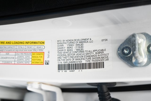 Platinum White Pearl 2024 Honda Civic Sport FWD CVT 2.0L I4 DOHC 16V Black w/Leather-Trimmed Seating Surfaces.