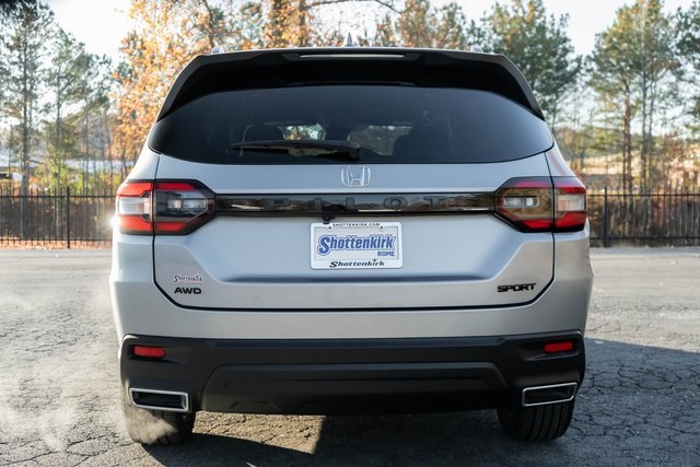 Silver 2024 Honda Pilot Sport AWD 10-Speed Automatic 3.5L V6 DOHC 24V AWD, Adaptive Cruise Control: Adaptive Cruise Control (ACC) with Low-Speed Follow, Air Conditioning, Blind Spot Information (BSI) System warning, Brake assist, Electronic Stability Control, Emergency communication system: HondaLink Assist, Lane departure: Lane Keeping Assist System (LKAS) active, Panic alarm, Security system, Speed control.