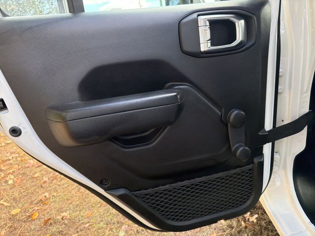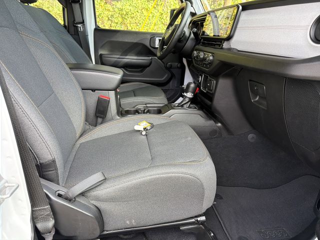 This vehicle comes well equipped with Quick Order Package 24B Sport, Wrangler Sport, 4D Sport Utility, 3.6L V6 24V VVT, 8-Speed Automatic, 4WD, Bright White Clearcoat, 4-Wheel Disc Brakes, 8 Speakers, ABS brakes, Air Conditioning, AM/FM radio, Apple CarPlay/Android Auto, Aux Battery, Brake assist, Cloth Low-Back Bucket Seats, Compass, Delay-off headlights, Driver door bin, Driver vanity mirror, Dual front impact airbags, Dual front side impact airbags, Electronic Stability Control, Front anti-roll bar, Front Bucket Seats, Front Center Armrest w/Storage, Front fog lights, Front reading lights, Integrated roll-over protection, Low tire pressure warning, Non-Lock Fuel Cap w/o Discriminator, Occupant sensing airbag, Outside temperature display, Overhead airbag, ParkView Rear Back-Up Camera, Passenger door bin, Passenger vanity mirror, Power steering, Radio data system, Radio: Uconnect 5 w/12.3" Display, Rear anti-roll bar, Rear reading lights, Speed control, Split folding rear seat, Steering wheel mounted audio controls, Stop-Start Dual Battery System, Tachometer, Telescoping steering wheel, Tilt steering wheel, Traction control, Trip computer, and Variably intermittent wipers Quick Order Package 24B Sport, Wrangler Sport, 4D Sport Utility, 3.6L V6 24V VVT, 8-Speed Automatic, 4WD, Bright White Clearcoat, 4-Wheel Disc Brakes, 8 Speakers, ABS brakes, Air Conditioning, AM/FM radio, Apple CarPlay/Android Auto, Aux Battery, Brake assist, Cloth Low-Back Bucket Seats, Compass, Delay-off headlights, Driver door bin, Driver vanity mirror, Dual front impact airbags, Dual front side impact airbags, Electronic Stability Control, Front anti-roll bar, Front Bucket Seats, Front Center Armrest w/Storage, Front fog lights, Front reading lights, Integrated roll-over protection, Low tire pressure warning, Non-Lock Fuel Cap w/o Discriminator, Occupant sensing airbag, Outside temperature display, Overhead airbag, ParkView Rear Back-Up Camera, Passenger door bin, Passenger vanity mirror, Power steering, Radio data system, Radio: Uconnect 5 w/12.3" Display, Rear anti-roll bar, Rear reading lights, Speed control, Split folding rear seat, Steering wheel mounted audio controls, Stop-Start Dual Battery System, Tachometer, Telescoping steering wheel, Tilt steering wheel, Traction control, Trip computer, Variably intermittent wipers, and 3.45 Overall Top Gear Ratio.