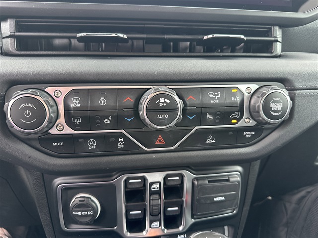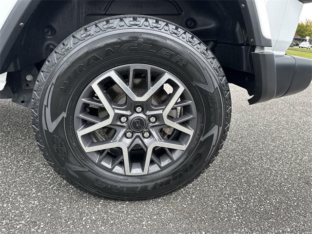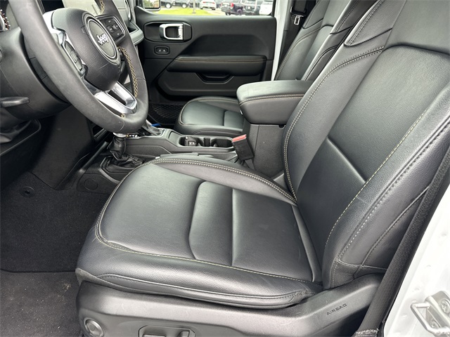 This vehicle comes well equipped with Quick Order Package 24G Sahara, Trailer Tow & Aux Switch Group (7 & 4 Pin Wiring Harness, Auxiliary Switches, and Class II Receiver Hitch), 110 MPH Vehicle Max Speed Calibration, 12.3" Touchscreen Display, 3.45 Overall Top Gear Ratio, 4-Wheel Disc Brakes, 8 Speakers, ABS brakes, Air Conditioning, Alloy wheels, AM/FM radio: SiriusXM, Apple CarPlay, Apple CarPlay/Android Auto, Automatic temperature control, Aux Battery, Brake assist, Cloth Low-Back Bucket Seats, Compass, Connectivity - US/Canada, Delay-off headlights, Disassociated Touchscreen Display, Driver door bin, Driver vanity mirror, Dual front impact airbags, Dual front side impact airbags, Electronic Stability Control, Emergency communication system: Jeep Connect, Front anti-roll bar, Front Bucket Seats, Front Center Armrest w/Storage, Front dual zone A/C, Front fog lights, Front reading lights, Fully automatic headlights, Google Android Auto, Heated door mirrors, Heated front seats, Heated steering wheel, Heavy Duty Suspension w/Gas Shocks, Illuminated entry, Integrated Center Stack Radio, Integrated roll-over protection, Integrated Voice Command w/Bluetooth, Low tire pressure warning, Occupant sensing airbag, Outside temperature display, Overhead airbag, Panic alarm, ParkView Rear Back-Up Camera, Passenger door bin, Passenger vanity mirror, Power door mirrors, Power steering, Power windows, Radio data system, Radio: Uconnect 5 w/12.3" Display, Rear anti-roll bar, Rear reading lights, Remote keyless entry, Security system, Speed control, Split folding rear seat, Steering wheel mounted audio controls, Stop-Start Dual Battery System, Tachometer, Telescoping steering wheel, Tilt steering wheel, Traction control, Trip computer, Variably intermittent wipers, and Voltmeter Quick Order Package 24G Sahara, Trailer Tow & Aux Switch Group (7 & 4 Pin Wiring Harness, Auxiliary Switches, and Class II Receiver Hitch), 110 MPH Vehicle Max Speed Calibration, 12.3" Touchscreen Display, 3.45 Overall Top Gear Ratio, 4-Wheel Disc Brakes, 8