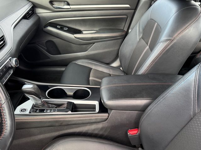 This vehicle comes well equipped with Altima 2.5 SR, 4D Sedan, 2.5L 4-Cylinder DOHC 16V, CVT with Xtronic, FWD, Gray Sky Pearl, and Sport Cloth Altima 2.5 SR, 4D Sedan, 2.5L 4-Cylinder DOHC 16V, CVT with Xtronic, FWD, Gray Sky Pearl, Sport Cloth, 4-Wheel Disc Brakes, 6 Speakers, ABS brakes, Air Conditioning, Alloy wheels, AM/FM radio: SiriusXM, Auto High-beam Headlights, Blind Spot Warning, Brake assist, Bumpers: body-color, Delay-off headlights, Driver door bin, Driver vanity mirror, Dual front impact airbags, Dual front side impact airbags, Electronic Stability Control, Four wheel independent suspension, Front anti-roll bar, Front Bucket Seats, Front Center Armrest, Front reading lights, Fully automatic headlights, Illuminated entry, Knee airbag, Leather Shift Knob, Low tire pressure warning, NissanConnect featuring Apple CarPlay, Occupant sensing airbag, Outside temperature display, Overhead airbag, Overhead console, Panic alarm, Passenger door bin, Passenger vanity mirror, Power door mirrors, Power driver seat, Power steering, Power windows, Radio data system, Radio: AM/FM Audio System, Rear anti-roll bar, Rear Parking Sensors, Rear reading lights, Rear seat center armrest, Rear side impact airbag, Rear window defroster, Remote keyless entry, Security system, Speed control, Speed-sensing steering, Speed-Sensitive Wipers, Split folding rear seat, Sport Seat Trim, SR Floor Mats/Trunk Mat/Hideaway Nets, Steering wheel mounted audio controls, Tachometer, Telescoping steering wheel, Tilt steering wheel, Traction control, Trip computer, Unique Sport Seats, Variably intermittent wipers, and Wheels: 19" Sport Alloy.