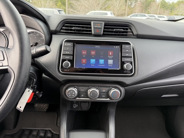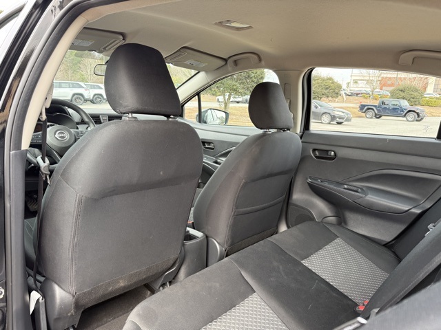 This vehicle comes well equipped with Versa 1.6 S, 4D Sedan, 1.6L I4 DOHC 16V, CVT, FWD, Super Black Metallic, and Charcoal Cloth S Plus Package (16" Alloy Wheels, 60/40 Split Rear Seat, and NissanConnect w/Apple CarPlay & Android Auto), Trunk Package (Shopping Bag Hooks and Trunk Net), Versa 1.6 S, 4D Sedan, 1.6L I4 DOHC 16V, CVT, FWD, Super Black Metallic, Charcoal Cloth, 15" Steel Wheels w/Full Wheel Covers, 4 Speakers, ABS brakes, Air Conditioning, AM/FM radio, Auto High-beam Headlights, Brake assist, Bumpers: body-color, Carpeted Floor Mats, Cloth Seat Trim, Driver door bin, Driver vanity mirror, Dual front impact airbags, Dual front side impact airbags, Electronic Stability Control, Front anti-roll bar, Front Bucket Seats, Front reading lights, Front wheel independent suspension, Fully automatic headlights, Illuminated entry, Knee airbag, Low tire pressure warning, Occupant sensing airbag, Outside temperature display, Overhead airbag, Panic alarm, Passenger door bin, Passenger vanity mirror, Power door mirrors, Power steering, Power windows, Radio data system, Radio: AM/FM Audio System, Rear Parking Sensors, Rear side impact airbag, Rear window defroster, Speed control, Splash Guards, Steering wheel mounted audio controls, Tachometer, Telescoping steering wheel, Tilt steering wheel, Traction control, Trip computer, and Variably intermittent wipers.