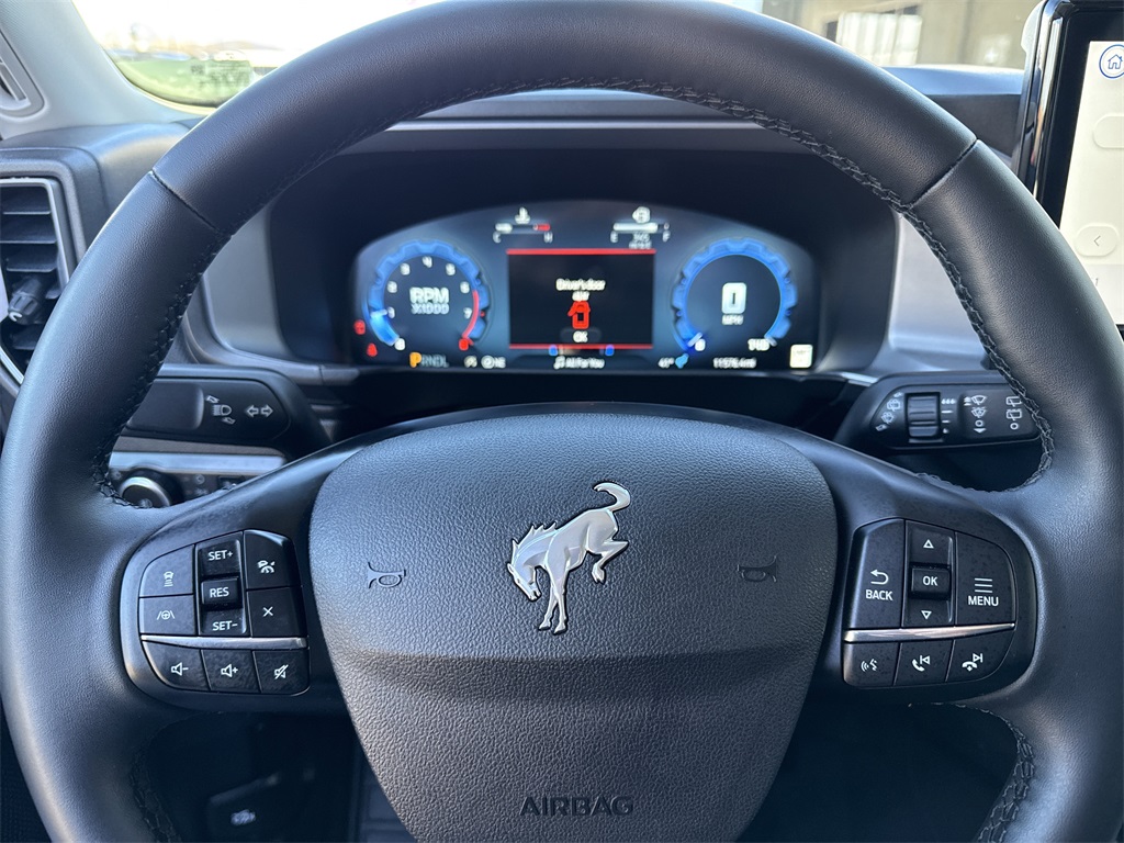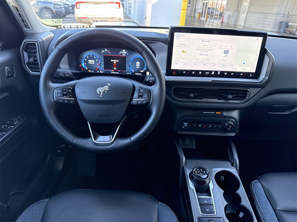 **One Owner**, **Clean Carfax**, **Low Mileage**, **Heated Seats, **Front bucket seats with center console**, Apple car play/ Android auto, **Ford Sync Bluetooth**, **Bluetooth/Hands Free**, **Rear back up camera**, **Reverse Sensing System**, **Blind Spot Detection**, **Lane monitor**, **Power liftgate**, **Remote start**, and **SIRIUS SAT. RADIO** Equipment Group 300A, Outer Banks Tech Package+ (B&O Sound System by Bang & Olufsen, Connected Navigation, and HD Radio), 360-Degree Camera w/Trail & Split View, 4-Wheel Disc Brakes, 6 Speakers, ABS brakes, Air Conditioning, Alloy wheels, AM/FM radio: SiriusXM, AM/FM Stereo, Auto High-beam Headlights, Auto-dimming Rear-View mirror, Automatic temperature control, Brake assist, Compass, Delay-off headlights, Driver door bin, Driver vanity mirror, Dual front impact airbags, Dual front side impact airbags, Electronic Stability Control, Emergency communication system: SYNC 4 911 Assist, Four wheel independent suspension, Front anti-roll bar, Front Bucket Seats, Front Center Armrest, Front Driver/Passenger Seat Back Map Pockets, Front dual zone A/C, Front fog lights, Front License Plate Bracket, Front Parking Sensors, Front reading lights, Fully automatic headlights, Garage door transmitter, Heated door mirrors, Heated front seats, Heated steering wheel, Illuminated entry, Knee airbag, Low tire pressure warning, Memory seat, Occupant sensing airbag, Outside temperature display, Overhead airbag, Overhead console, Panic alarm, Passenger door bin, Passenger vanity mirror, Power door mirrors, Power driver seat, Power Moonroof, Power passenger seat, Power steering, Power windows, Premium Trimmed Front Bucket Seats w/Ebony/Roast, Radio data system, Rain sensing wipers, Rear anti-roll bar, Rear Parking Sensors, Rear reading lights, Rear seat center armrest, Rear window defroster, Rear window wiper, Remote keyless entry, Reverse Brake Assist, Security system, SiriusXM, Speed control, Speed-sensing steering, Speed-Sensitive Wipers, Split folding rear seat, Steering wheel mounted audio controls, SYNC 4 w/Enhanced Voice Recognition, Tachometer, Telescoping steering wheel, Tilt steering wheel, Traction control, Trip computer, Variably intermittent wipers, and Wheels: 18" Ebony Black-Painted Aluminum Shottenkirk Ford of Jasper is pleased to offer you this exceptional 2025 Ford Bronco Sport. This Outer Banks Bronco Sport Exterior is finished in Oxford White and the interior is finished in Platinum Blue Cloth. CARFAX One-Owner. Clean CARFAX. 25/30 City/Highway MPG Priced below KBB Fair Purchase Price!