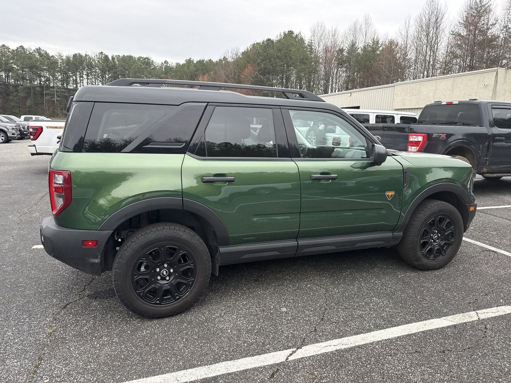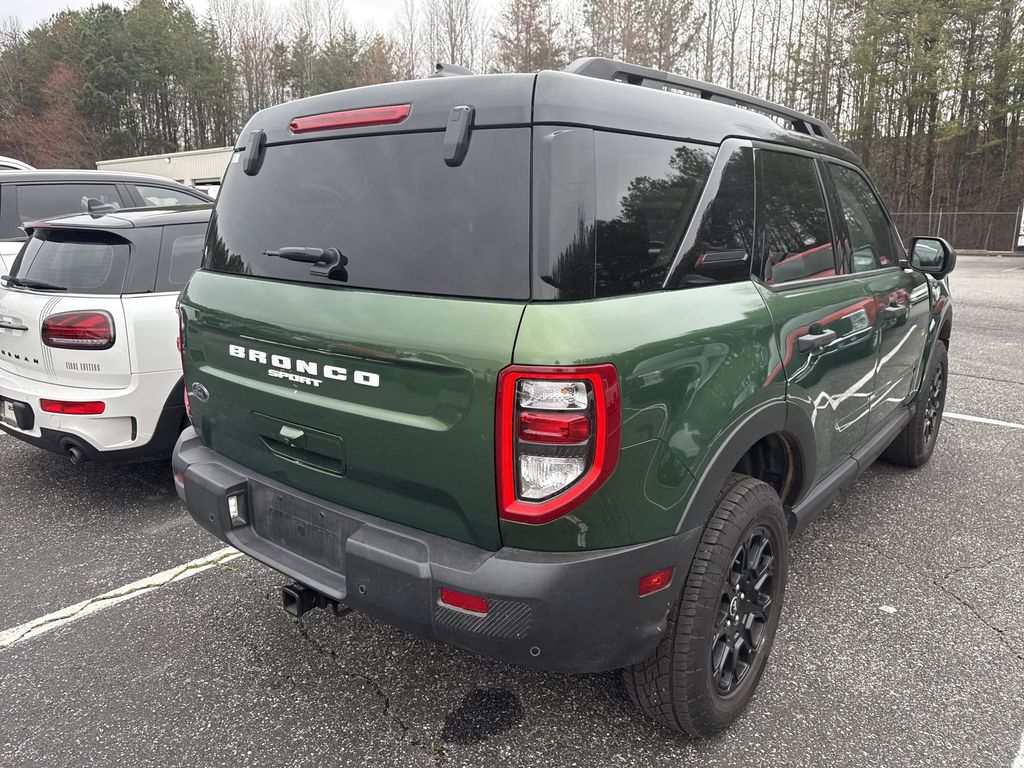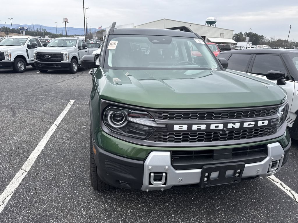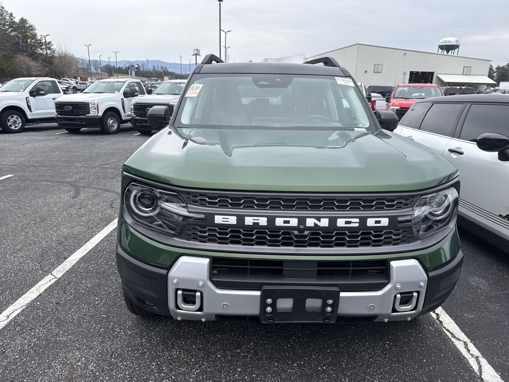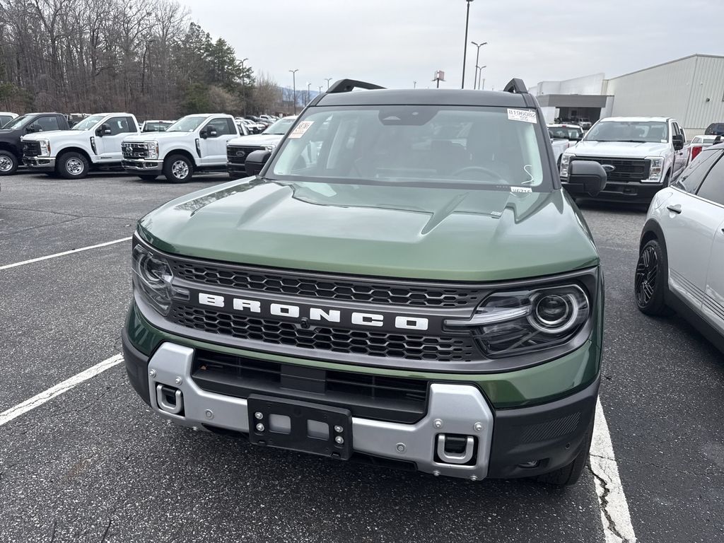 **One Owner**, **Clean Carfax**, **Low Mileage**, **Leather interior**, **Heated Seats, **Front bucket seats with center console**, Apple car play/ Android auto, **Ford Sync Bluetooth**, **Bluetooth/Hands Free**, **Rear back up camera**, **Reverse Sensing System**, **Blind Spot Detection**, **Lane monitor**, **Power liftgate**, **Remote start**, and **SIRIUS SAT. RADIO** Equipment Group 400A, 4-Wheel Disc Brakes, 6 Speakers, ABS brakes, Air Conditioning, Alloy wheels, AM/FM radio: SiriusXM, AM/FM Stereo, Auto High-beam Headlights, Auto-dimming Rear-View mirror, Automatic temperature control, Brake assist, Compass, Delay-off headlights, Driver door bin, Driver vanity mirror, Dual front impact airbags, Dual front side impact airbags, Electronic Stability Control, Emergency communication system: SYNC 4 911 Assist, Four wheel independent suspension, Front anti-roll bar, Front Bucket Seats, Front Center Armrest, Front fog lights, Front License Plate Bracket, Front reading lights, Fully automatic headlights, Garage door transmitter, Heated door mirrors, Heated front seats, Heated steering wheel, Illuminated entry, Knee airbag, Leather Trimmed Front Bucket Seats, Low tire pressure warning, Memory seat, Occupant sensing airbag, Outside temperature display, Overhead airbag, Overhead console, Panic alarm, Passenger door bin, Passenger vanity mirror, Power door mirrors, Power driver seat, Power passenger seat, Power steering, Power windows, Radio data system, Rear anti-roll bar, Rear reading lights, Rear seat center armrest, Rear window defroster, Rear window wiper, Remote keyless entry, Security system, SiriusXM, Speed control, Speed-sensing steering, Speed-Sensitive Wipers, Split folding rear seat, Steering wheel mounted audio controls, SYNC 4 w/Enhanced Voice Recognition, Tachometer, Telescoping steering wheel, Tilt steering wheel, Traction control, Trip computer, Variably intermittent wipers, and Wheels: 17" Matte Black-Painted Aluminum Shottenkirk Ford of Jasper is pleased to offer you this exceptional 2025 Ford Bronco Sport. This Badlands Bronco Sport Exterior is finished in Eruption Green Metallic and the interior is finished in Dark Space Gray w/Leather Trimmed Front Bucket Seats. CARFAX One-Owner. Clean CARFAX. 21/27 City/Highway MPG