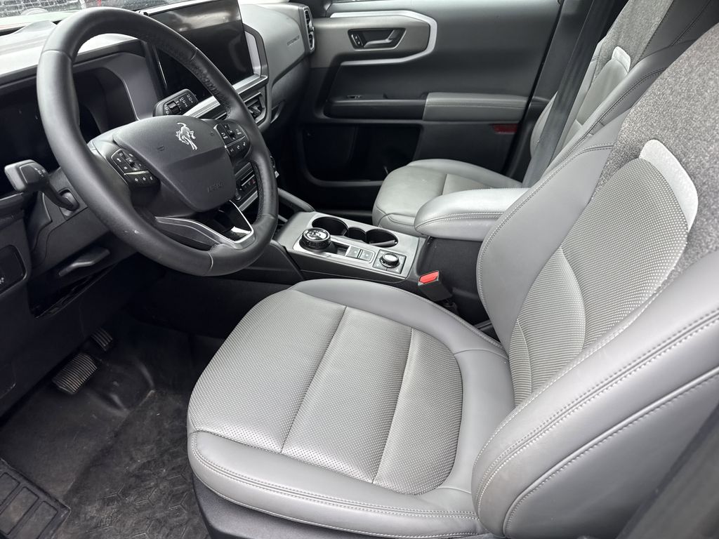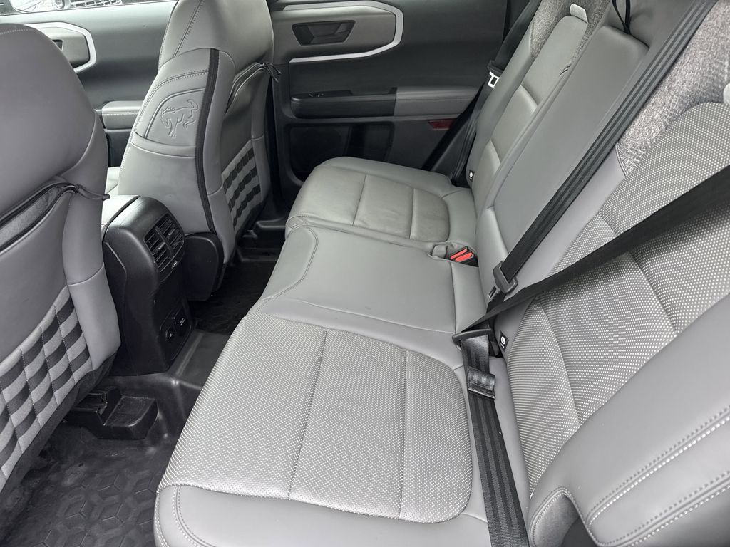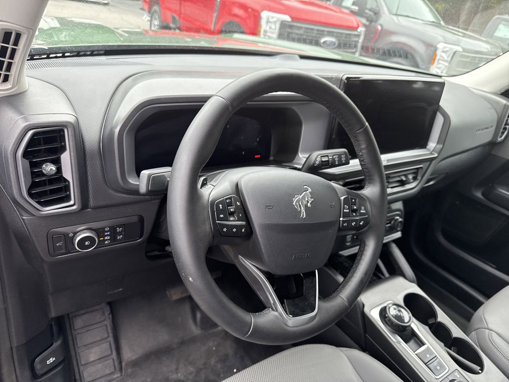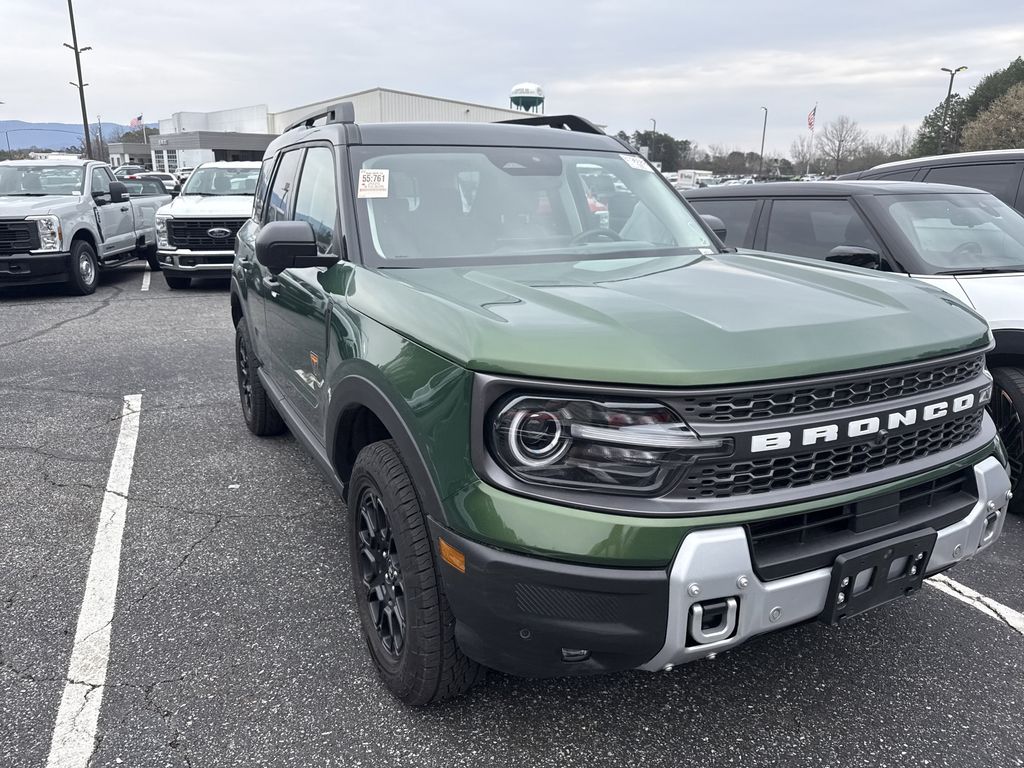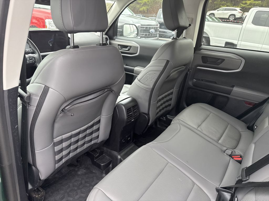 **One Owner**, **Clean Carfax**, **Low Mileage**, **Leather interior**, **Heated Seats, **Front bucket seats with center console**, Apple car play/ Android auto, **Ford Sync Bluetooth**, **Bluetooth/Hands Free**, **Rear back up camera**, **Reverse Sensing System**, **Blind Spot Detection**, **Lane monitor**, **Power liftgate**, **Remote start**, and **SIRIUS SAT. RADIO** Equipment Group 400A, 4-Wheel Disc Brakes, 6 Speakers, ABS brakes, Air Conditioning, Alloy wheels, AM/FM radio: SiriusXM, AM/FM Stereo, Auto High-beam Headlights, Auto-dimming Rear-View mirror, Automatic temperature control, Brake assist, Compass, Delay-off headlights, Driver door bin, Driver vanity mirror, Dual front impact airbags, Dual front side impact airbags, Electronic Stability Control, Emergency communication system: SYNC 4 911 Assist, Four wheel independent suspension, Front anti-roll bar, Front Bucket Seats, Front Center Armrest, Front fog lights, Front License Plate Bracket, Front reading lights, Fully automatic headlights, Garage door transmitter, Heated door mirrors, Heated front seats, Heated steering wheel, Illuminated entry, Knee airbag, Leather Trimmed Front Bucket Seats, Low tire pressure warning, Memory seat, Occupant sensing airbag, Outside temperature display, Overhead airbag, Overhead console, Panic alarm, Passenger door bin, Passenger vanity mirror, Power door mirrors, Power driver seat, Power passenger seat, Power steering, Power windows, Radio data system, Rear anti-roll bar, Rear reading lights, Rear seat center armrest, Rear window defroster, Rear window wiper, Remote keyless entry, Security system, SiriusXM, Speed control, Speed-sensing steering, Speed-Sensitive Wipers, Split folding rear seat, Steering wheel mounted audio controls, SYNC 4 w/Enhanced Voice Recognition, Tachometer, Telescoping steering wheel, Tilt steering wheel, Traction control, Trip computer, Variably intermittent wipers, and Wheels: 17" Matte Black-Painted Aluminum Shottenkirk Ford of Jasper is pleased to offer you this exceptional 2025 Ford Bronco Sport. This Badlands Bronco Sport Exterior is finished in Eruption Green Metallic and the interior is finished in Dark Space Gray w/Leather Trimmed Front Bucket Seats. CARFAX One-Owner. Clean CARFAX. 21/27 City/Highway MPG