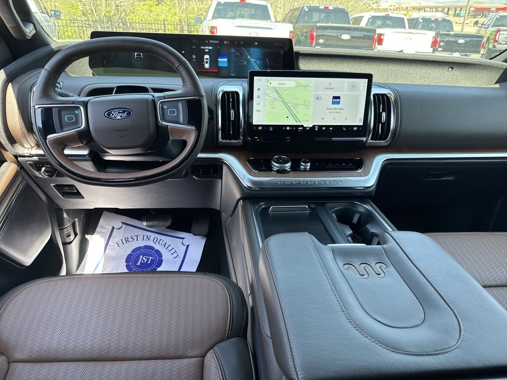 ** Super Clean **, **Local Trade In**, **One Owner**, **Clean Carfax**, **Low Mileage**, Twin Panel Moonroof, **Leather interior**, **Heated/Cooled Seats**, **Heated Seats, **Front bucket seats with center console**, Apple car play/ Android auto, **Ford Sync Bluetooth**, **Bluetooth/Hands Free**, **Rear back up camera**, **Reverse Sensing System**, **Blind Spot Detection**, **Lane monitor**, **GPS/ Navigation**, **2nd Row Heated Seats**, **2nd row buckets seats**, **Power liftgate**, **Remote start**, Power running boards, **SIRIUS SAT. RADIO**, Forward collison/adaptive cruise control, and B&O sound system Equipment Group 400A Standard Package (BlueCruise Equipped (1-Year Plan)), 22 Speakers, 3.73 Axle Ratio, 3rd row seats: split-bench, 4-Wheel Disc Brakes, ABS brakes, Adaptive suspension, Adjustable pedals, Air Conditioning, Alloy wheels, AM/FM radio: SiriusXM with 360L, Apple CarPlay/Android Auto, Auto High-beam Headlights, Auto-dimming door mirrors, Auto-dimming Rear-View mirror, Automatic temperature control, Black Roof-Rail Cross Bars, Brake assist, Bumpers: body-color, Compass, Delay-off headlights, Driver door bin, Driver vanity mirror, Dual front impact airbags, Dual front side impact airbags, Electronic Stability Control, Emergency communication system: 911 Assist, Exterior Parking Camera Rear, Four wheel independent suspension, Front anti-roll bar, Front Bucket Seats, Front Center Armrest, Front dual zone A/C, Front reading lights, Fully automatic headlights, Garage door transmitter, Genuine wood dashboard insert, Genuine wood door panel insert, Heated door mirrors, Heated front seats, Heated rear seats, Heated steering wheel, Heated/Vent Prem Del Rio Lthr Fr Captain's Chairs, Illuminated entry, Leather steering wheel, Low tire pressure warning, Memory seat, Navigation System, Occupant sensing airbag, Outside temperature display, Overhead airbag, Overhead console, Panic alarm, Passenger door bin, Passenger vanity mirror, Pedal memory, Power door mirrors, Power driver seat, Power moonroof: Vista Roof, Power passenger seat, Power steering, Power windows, Radio data system, Radio: B&O Unleashed Sound System by Bang & Olufsen, Rain sensing wipers, Rear air conditioning, Rear anti-roll bar, Rear reading lights, Rear window defroster, Rear window wiper, Reclining 3rd row seat, Remote keyless entry, Security system, SiriusXM w/360L, Speed control, Speed-sensing steering, Speed-Sensitive Wipers, Split folding rear seat, Spoiler, Steering wheel memory, Steering wheel mounted audio controls, Tachometer, Telescoping steering wheel, Tilt steering wheel, Traction control, Trip computer, Turn signal indicator mirrors, Variably intermittent wipers, Ventilated front seats, Voltmeter, and Wheels: 22" Sinister Brown w/Diamond Cut Face Alum Shottenkirk Ford of Jasper is pleased to offer you this exceptional 2025 Ford Expedition Max. This King Ranch Expedition Max Exterior is finished in Agate Black Metallic and the interior is finished in Mesa w/Heated/Vent Prem Del Rio Lthr Fr Captain's Chairs. Priced below KBB Fair Purchase Price!