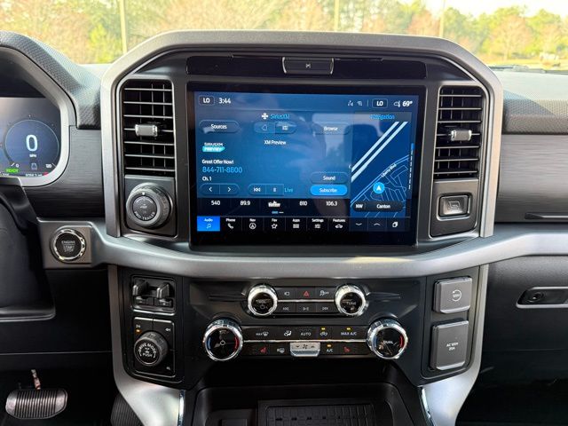 This vehicle comes well equipped with Equipment Group 302A Mid (360 Degree Camera, 400W Cab & Bed Outlets, 6" Angular Bright Anodized Step Bar, Adaptive Cruise Control w/Stop & Go, Auto-Dimming Rear-View Mirror, Black Painted Grille w/Chrome Center Bar, Chrome Door & Tailgate Handles, Chrome Single-Tip Exhaust, Cloth 40/Console/40 Front Seats, Connected Navigation, Driver State Detection, Dual-Zone Electronic Automatic Temperature Control, Evasive Steering Assist, Ford Co-Pilot360 Assist 2.0, Front Parking Sensors, Heated Front Seats, Intelligent Access w/Push Button Start, Power Glass Heated Sideview Mirrors, Power-Sliding Rear Window, Remote Start System w/Remote Tailgate Release, Towing Technology, and Wrapped Steering Wheel), Tow/Haul Package (Integrated Trailer Brake Controller), Auto High-beam Headlights, Delay-off headlights, Front fog lights, Fully automatic headlights, Max Tow Electronic Locking w/3.73 Axle Ratio, SYNC 4 w/Enhanced Voice Recognition, and Wheel Well Liner Equipment Group 302A Mid (360 Degree Camera, 400W Cab & Bed Outlets, 6" Angular Bright Anodized Step Bar, Adaptive Cruise Control w/Stop & Go, Auto-Dimming Rear-View Mirror, Black Painted Grille w/Chrome Center Bar, Chrome Door & Tailgate Handles, Chrome Single-Tip Exhaust, Cloth 40/Console/40 Front Seats, Connected Navigation, Driver State Detection, Dual-Zone Electronic Automatic Temperature Control, Evasive Steering Assist, Ford Co-Pilot360 Assist 2.0, Front Parking Sensors, Heated Front Seats, Intelligent Access w/Push Button Start, Power Glass Heated Sideview Mirrors, Power-Sliding Rear Window, Remote Start System w/Remote Tailgate Release, Towing Technology, and Wrapped Steering Wheel), Tow/Haul Package (Integrated Trailer Brake Controller), Auto High-beam Headlights, Delay-off headlights, Front fog lights, Fully automatic headlights, Max Tow Electronic Locking w/3.73 Axle Ratio, SYNC 4 w/Enhanced Voice Recognition, Wheel Well Liner, 4-Wheel Disc Brakes, 6 Speakers, ABS brakes, Air Conditioning, Alloy wheels, AM/FM radio: SiriusXM with 360L, Brake assist, Bumpers: chrome, Chrome wheels, Cloth 40/20/40 Front Seat, Compass, Driver door bin, Driver vanity mirror, Dual front impact airbags, Dual front side impact airbags, Electronic Stability Control, Emergency communication system: SYNC 4 911 Assist, Front anti-roll bar, Front Center Armrest, Front reading lights, Front wheel independent suspension, Heated door mirrors, Illuminated entry, Internet access capable: FordPass Connect 5G, Low tire pressure warning, Occupan
