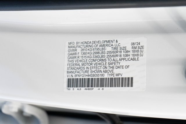 White 2025 Honda Pilot EX-L AWD 10-Speed Automatic 3.5L V6 DOHC 24V AWD.
