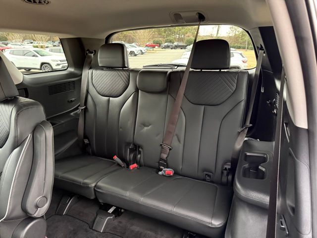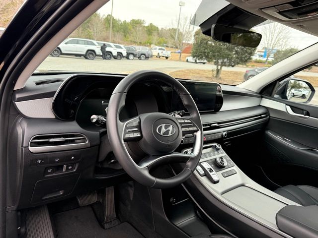 This vehicle comes well equipped with Option Group 01, Palisade XRT, 4D Sport Utility, V6, 8-Speed Automatic with SHIFTRONIC, AWD, Abyss Black Pearl, Black Premium Synthetic, Apple CarPlay & Android Auto, Front Bucket Seats, H-Tex Leatherette Seat Trim, Heated Front Bucket Seats, Heated front seats, Navigation System, Power Liftgate, Power moonroof, Power passenger seat, Reclining 3rd row seat, and Wheels: 20" x 7.5J Dark Alloy w/Rugged Styling Option Group 01, Palisade XRT, 4D Sport Utility, V6, 8-Speed Automatic with SHIFTRONIC, AWD, Abyss Black Pearl, Black Premium Synthetic, Apple CarPlay & Android Auto, Front Bucket Seats, H-Tex Leatherette Seat Trim, Heated Front Bucket Seats, Heated front seats, Navigation System, Power Liftgate, Power moonroof, Power passenger seat, Reclining 3rd row seat, Wheels: 20" x 7.5J Dark Alloy w/Rugged Styling, 3rd row seats: split-bench, 4-Wheel Disc Brakes, 6 Speakers, ABS brakes, Air Conditioning, Alloy wheels, AM/FM radio: SiriusXM, Auto High-beam Headlights, Auto-dimming door mirrors, Auto-dimming Rear-View mirror, Auto-leveling suspension, Automatic temperature control, Brake assist, Bumpers: body-color, Cargo Cover, Cargo Net, Carpeted Floor Mats, Delay-off headlights, Driver door bin, Driver vanity mirror, Dual front impact airbags, Dual front side impact airbags, Electronic Stability Control, Emergency communication system, Exterior Parking Camera Rear, First Aid Kit, Four wheel independent suspension, Front anti-roll bar, Front Center Armrest, Front dual zone A/C, Front reading lights, Fully automatic headlights, Heated door mirrors, Illuminated entry, Knee airbag, Leather steering wheel, Low tire pressure warning, Mudguards, Occupant sensing airbag, Outside temperature display, Overhead airbag, Overhead console, Panic alarm, Passenger door bin, Passenger vanity mirror, Power door mirrors, Power driver seat, Power steering, Power windows, Radio data system, Radio: AM/FM/MP3 Audio System, Rear air conditioning, Rear anti-roll bar, Rear audio controls, Rear reading lights, Rear side impact airbag, Rear window defroster, Rear window wiper, Remote keyless entry, Roof rack, Security system, Speed control, Speed-sensing steering, Split folding rear seat, Spoiler, Steering wheel mounted audio controls, Tachometer, Telescoping steering wheel, Tilt steering wheel, Traction control, Trip computer, Turn signal indicator mirrors, and Variably intermittent wipers.