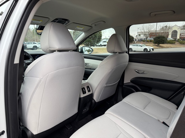 This vehicle comes well equipped with Tucson SEL, 4D Sport Utility, 2.5L I4 DGI DOHC 16V LEV3-SULEV30 187hp, 8-Speed Automatic with SHIFTRONIC, FWD, White Pearl, and Gray Cloth Option Group 01, Tucson SEL, 4D Sport Utility, 2.5L I4 DGI DOHC 16V LEV3-SULEV30 187hp, 8-Speed Automatic with SHIFTRONIC, FWD, White Pearl, Gray Cloth, 18" Alloy Wheels, 4-Wheel Disc Brakes, 6 Speakers, ABS brakes, Air Conditioning, Alloy wheels, AM/FM radio: SiriusXM, Apple CarPlay & Android Auto, Auto High-beam Headlights, Automatic temperature control, Brake assist, Bumpers: body-color, Delay-off headlights, Driver door bin, Driver vanity mirror, Dual front impact airbags, Dual front side impact airbags, Electronic Stability Control, Emergency communication system: Bluelink+, Four wheel independent suspension, Front anti-roll bar, Front Bucket Seats, Front Center Armrest, Front dual zone A/C, Front reading lights, Fully automatic headlights, Heated door mirrors, Heated Front Bucket Seats, Heated front seats, Illuminated entry, Low tire pressure warning, Occupant sensing airbag, Outside temperature display, Overhead airbag, Overhead console, Panic alarm, Passenger door bin, Passenger vanity mirror, Power door mirrors, Power driver seat, Power Liftgate, Power steering, Power windows, Radio data system, Radio: AM/FM/HD Audio System, Rear anti-roll bar, Rear reading lights, Rear seat center armrest, Rear side impact airbag, Rear window defroster, Rear window wiper, Remote keyless entry, Security system, Speed control, Split folding rear seat, Spoiler, Stain & Odor Resistant Cloth Seat Trim, Steering wheel mounted audio controls, Tachometer, Telescoping steering wheel, Tilt steering wheel, Traction control, Trip computer, and Variably intermittent wipers.
