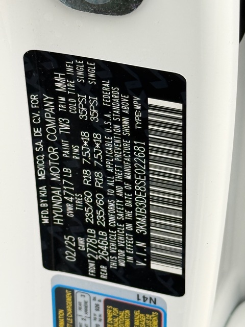 2025 Hyundai Tucson SEL 4D Sport Utility White Pearl 2.5L I4 DGI DOHC 16V LEV3-SULEV30 187hp 8-Speed Automatic with SHIFTRONIC FWD