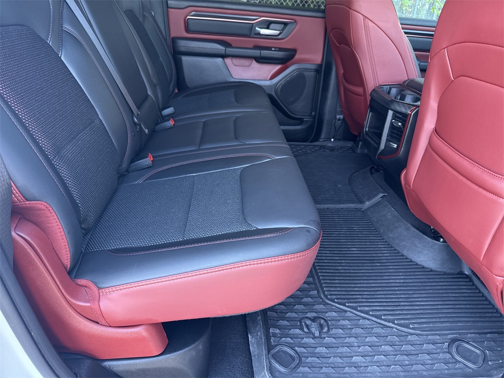 **One Owner**, **Clean Carfax**, **Heated Seats, **Front bucket seats with center console**, Apple car play/ Android auto, **Bluetooth/Hands Free**, **Rear back up camera**, **Reverse Sensing System**, **Blind Spot Detection**, **Lane monitor**, **Drivers Power Seat**, **Passenger power seat**, **Remote start**, **Fixed running boards/side steps**, **SIRIUS SAT. RADIO**, and **Spray in bedliner** Quick Order Package 21W Rebel, Rebel Level 1 Equipment Group (Auto Power-Folding Mirrors, Auto-Dimming Exterior Driver Mirror, Black Premium Power Mirrors, Convex Wide-Angle Exterior Mirror Insert, Exterior Mirrors Courtesy Lamps, Exterior Mirrors w/Heating Element, Exterior Mirrors w/Supplemental Signals, Power Adjustable Pedals, Rear Window Defroster, Remote Tailgate Release, and Wireless Charging Pad), 10 Speakers, 3.92 Rear Axle Ratio, 33 Gallon Fuel Tank, 4 Way Front Headrests, 4-Wheel Disc Brakes, 4G LTE Wi-Fi Hot Spot, ABS brakes, Air Conditioning, Alloy wheels, AM/FM radio: SiriusXM with 360L, Apple CarPlay, Apple CarPlay/Android Auto, Auto High-beam Headlights, Auto-dimming Rear-View mirror, Automatic temperature control, Brake assist, Bucket Seats, Cloth/Vinyl Bucket Seats, Compass, Connected Travel & Traffic Services, Connectivity - US/Canada, Delay-off headlights, Driver door bin, Driver vanity mirror, Dual front impact airbags, Dual front side impact airbags, Electronic Stability Control, Front anti-roll bar, Front Bucket Seats, Front Center Armrest w/Storage, Front dual zone A/C, Front fog lights, Front License Plate Bracket, Front reading lights, Front Seat Back Map Pockets, Front wheel independent suspension, Full Length Upgraded Floor Console, Fully automatic headlights, Garage door transmitter, Google Android Auto, GPS Antenna Input, GPS Navigation, Heated door mirrors, Heated front seats, Heated steering wheel, Illuminated entry, Integrated Voice Command w/Bluetooth, Leather steering wheel, Low tire pressure warning, Manual Folding Exterior Mirrors, Manufacturer's Statement of Origin, Navigation System, Occupant sensing airbag, Outside temperature display, Overhead airbag, Overhead console, Panic alarm, ParkView Rear Back-Up Camera, Passenger door bin, Passenger vanity mirror, Power Adjust 8-Way Driver Seat, Power door mirrors, Power driver seat, Power steering, Power windows, Radio data system, Radio: Uconnect 5 Nav w/12.0" Display, Rear 60/40 Folding Seat, Rear anti-roll bar, Rear seat center armrest, Rear step bumper, Remote keyless entry, SiriusXM w/360L, Speed control, Split folding rear seat, Steering wheel mounted audio controls, Tachometer, Telescoping steering wheel, Tilt steering wheel, Traction control, Trip computer, USB Host Flip, Variably intermittent wipers, Voltmeter, and Wheels: 18" x 8.0" Painted Mid-Gloss Black Shottenkirk Ford of Jasper is pleased to offer you this exceptional 2025 Ram 1500. This Rebel 1500 Exterior is finished in Bright White Clearcoat and the interior is finished in Red/Black/Ebony w/Premium Quilted Leather Bucket Seats. CARFAX One-Owner. Clean CARFAX. Priced below KBB Fair Purchase Price!
