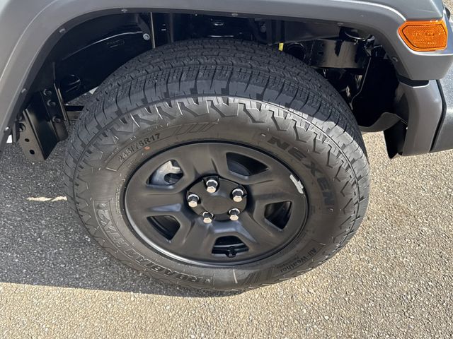 This vehicle comes well equipped with Quick Order Package 22B Sport, Wrangler Sport, 2D Sport Utility, 8-Speed Automatic, 4WD, 4-Wheel Disc Brakes, 8 Speakers, ABS brakes, Air Conditioning, AM/FM radio: SiriusXM with 360L, Apple CarPlay/Android Auto, Aux Battery, Black 3-Piece Hard Top, Brake assist, Cloth Low-Back Bucket Seats, Compass, Delay-off headlights, Driver door bin, Driver vanity mirror, Dual front impact airbags, Dual front side impact airbags, Electronic Stability Control, Freedom Panel Storage Bag, Front anti-roll bar, Front Bucket Seats, Front Center Armrest w/Storage, Front fog lights, Front reading lights, Illuminated entry, Integrated roll-over protection, Low tire pressure warning, MOPAR All-Weather Floor Mats, Normal Duty Suspension, Occupant sensing airbag, Outside temperature display, Overhead airbag, Panic alarm, ParkView Rear Back-Up Camera, Passenger door bin, Passenger vanity mirror, Power steering, Power windows, Radio data system, Rear anti-roll bar, Rear reading lights, Rear Window Defroster, Rear Window Wiper/Washer, Remote keyless entry, Speed control, Steering wheel mounted audio controls, Stop-Start Dual Battery System, Tachometer, Telescoping steering wheel, Tilt steering wheel, Traction control, and Trip computer Quick Order Package 22B Sport, Wrangler Sport, 2D Sport Utility, 8-Speed Automatic, 4WD, 4-Wheel Disc Brakes, 8 Speakers, ABS brakes, Air Conditioning, AM/FM radio: SiriusXM with 360L, Apple CarPlay/Android Auto, Aux Battery, Black 3-Piece Hard Top, Brake assist, Cloth Low-Back Bucket Seats, Compass, Delay-off headlights, Driver door bin, Driver vanity mirror, Dual front impact airbags, Dual front side impact airbags, Electronic Stability Control, Freedom Panel Storage Bag, Front anti-roll bar, Front Bucket Seats, Front Center Armrest w/Storage, Front fog lights, Front reading lights, Illuminated entry, Integrated roll-over protection, Low tire pressure warning, MOPAR All-Weather Floor Mats, Normal Duty Suspension, Occupant sensing airbag, Outside temperature display, Overhead airbag, Panic alarm, ParkView Rear Back-Up Camera, Passenger door bin, Passenger vanity mirror, Power steering, Power windows, Radio data system, Rear anti-roll bar, Rear reading lights, Rear Window Defroster, Rear Window Wiper/Washer, Remote keyless entry, Speed control, Steering wheel mounted audio controls, Stop-Start Dual Battery System, Tachometer, Telescoping steering wheel, Tilt steering wheel, Traction control, Trip