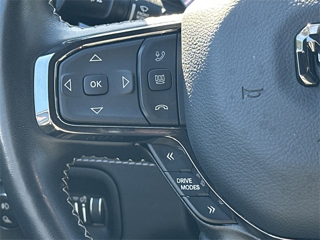 This vehicle comes well equipped with Quick Order Package 22M Limited, 1500 Limited, 4WD, Diamond Black Crystal Pearlcoat, Black Leather, 19 Speakers, 3.92 Rear Axle Ratio, 4-Wheel Disc Brakes, 4G LTE Wi-Fi Hot Spot, ABS brakes, Adjustable pedals, Air Conditioning, Alloy wheels, AM/FM radio: SiriusXM with 360L, Apple CarPlay, Apple CarPlay/Android Auto, Audio memory, Auto High-beam Headlights, Auto Power-Folding Mirrors, Auto-dimming door mirrors, Auto-Dimming Exterior Driver Mirror, Auto-dimming Rear-View mirror, Auto-leveling suspension, Automatic temperature control, Bodyside moldings, Brake assist, Bumpers: chrome, Chrome Exterior Mirrors, Compass, Connected Travel & Traffic Services, Connectivity - US/Canada, Convex Wide-Angle Exterior Mirror Insert, Delay-off headlights, Dome Dual LED Reading Lamp, Driver door bin, Driver vanity mirror, Dual front impact airbags, Dual front side impact airbags, Dual-Pane Panoramic Sunroof, Electronic Stability Control, Exterior 115V AC Outlet, Exterior Mirrors Courtesy Lamps, Exterior Mirrors w/Heating Element, Exterior Mirrors w/Memory, Exterior Mirrors w/Supplemental Signals, Front anti-roll bar, Front Bucket Se