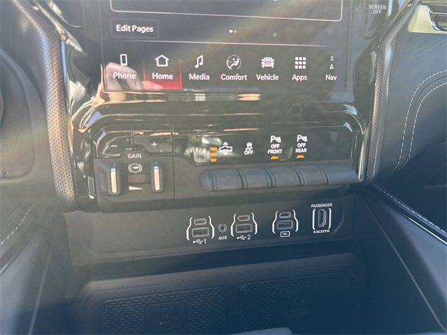 CLEAN CARFAX, SUPER CLEAN, ONE OWNER, 1500 Limited, 4WD, Diamond Black Crystal Pearlcoat, Black Leather, 19 Speakers, 3.92 Rear Axle Ratio, 4-Wheel Disc Brakes, 4G LTE Wi-Fi Hot Spot, ABS brakes, Adjustable pedals, Air Conditioning, Alloy wheels, AM/FM radio: SiriusXM with 360L, Apple CarPlay, Apple CarPlay/Android Auto, Audio memory, Auto High-beam Headlights, Auto Power-Folding Mirrors, Auto-dimming door mirrors, Auto-Dimming Exterior Driver Mirror, Auto-dimming Rear-View mirror, Auto-leveling suspension, Automatic temperature control, Bodyside moldings, Brake assist, Bumpers: chrome, Chrome Exterior Mirrors, Compass, Connected Travel & Traffic Services, Connectivity - US/Canada, Convex Wide-Angle Exterior Mirror Insert, Delay-off headlights, Dome Dual LED Reading Lamp, Driver door bin, Driver vanity mirror, Dual front impact airbags, Dual front side impact airbags, Dual-Pane Panoramic Sunroof, Electronic Stability Control, Exterior 115V AC Outlet, Exterior Mirrors Courtesy Lamps, Exterior Mirrors w/Heating Element, Exterior Mirrors w/Memory, Exterior Mirrors w/Supplemental Signals, Front anti-roll bar, Front Bucket Seats, Front Center Armrest w/Storage, Front dual zone A/C, Front fog lights, Front License Plate Bracket, Front reading lights, Front wheel independent suspension, Fully automatic headlights, Garage door transmitter, Genuine wood console insert, Genuine wood dashboard insert, Genuine wood door panel insert, Google Android Auto, GPS Antenna Input, GPS Navigation, harman/kardon® Speakers, HD Radio, Heated door mirrors, Heated front seats, Heated rear seats, Heated steering wheel, Illuminated entry, Integrated Voice Command w/Bluetooth, Leather steering wheel, LED Dome/Reading Lamp, Low tire pressure warning, Memory seat, Navigation System, Occupant sensing airbag, Outside temperature display, Overhead airbag, Overhead console, Panic alarm, ParkView Rear Back-Up Camera, Passenger door bin, Passenger vanity mirror, Pedal memory, Power door mirrors, Power driver seat, Power passenger seat, Power steering, Power windows, Premium Quilted Leather Bucket Seats, Quick Order Package 22M Limited, Radio data system, Radio: Uconnect 5 Nav w/12.0" Display, Rain sensing wipers, Rear anti-roll bar, Rear reading lights, Rear seat center armrest, Rear step bumper, Rear window defroster, Remote keyless entry, Security system, SiriusXM w/360L, Speed control, Split folding rear seat, Steering wheel mounted audio controls, Tachometer, Telescoping steering wheel, Tilt steering wheel, Traction control, Trailer Brake Control, Trip computer, Turn signal indicator mirrors, USB Host Flip, Variably intermittent wipers, Ventilated front seats, Ventilated rear seats, Voltmeter.